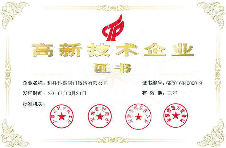 高新技术产品认定证书